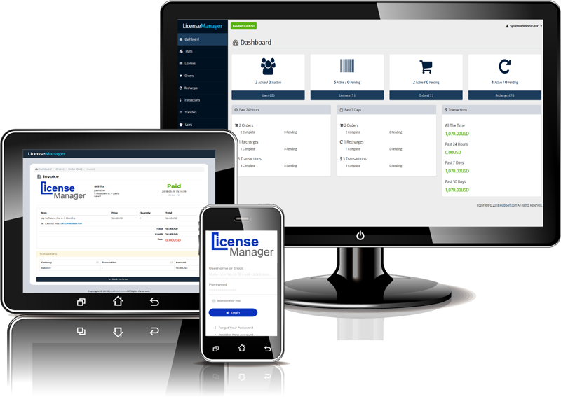 License Manager lets you create, manage, distribute and sell licenses for your software/s, setup your own license management and API server in minutes.
